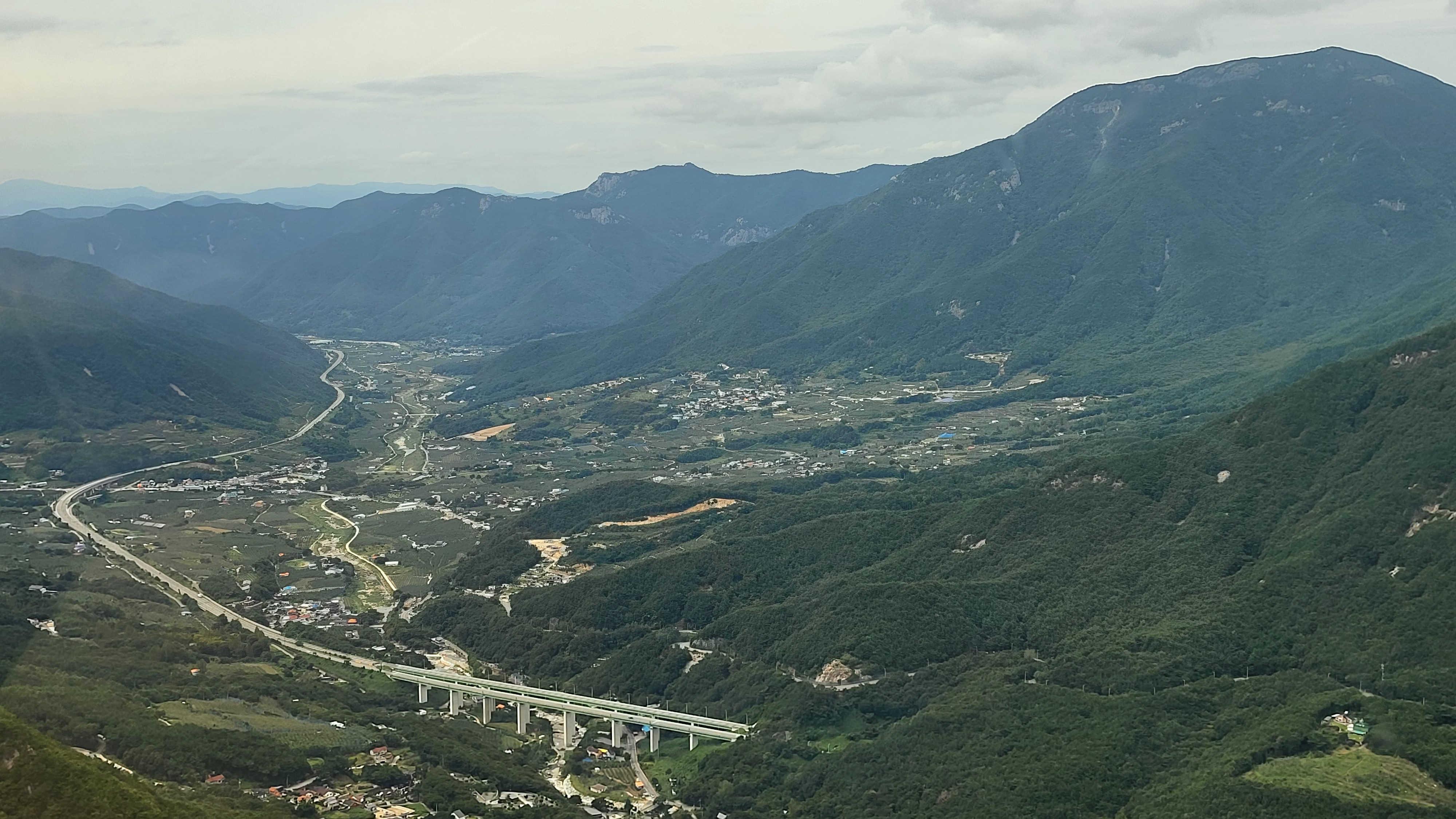 케이블카 안에서 내려다본 북쪽의 밀양시 산내면 풍광.