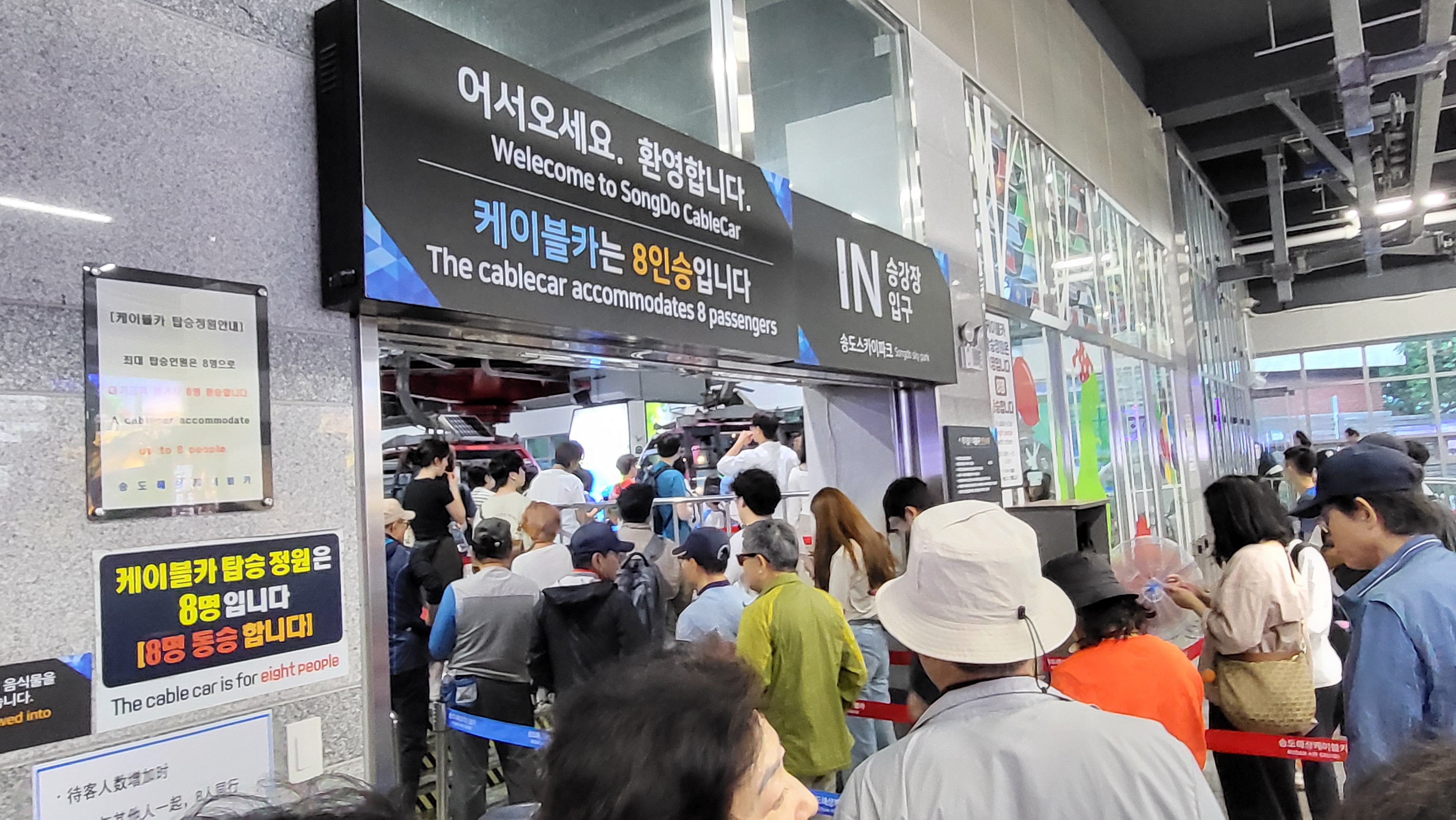 송도스카이파크 승강장에서 케이블카 탑승하여 송도베이스테이션 송도해상케이블카 승강장으로 되돌아나간다.