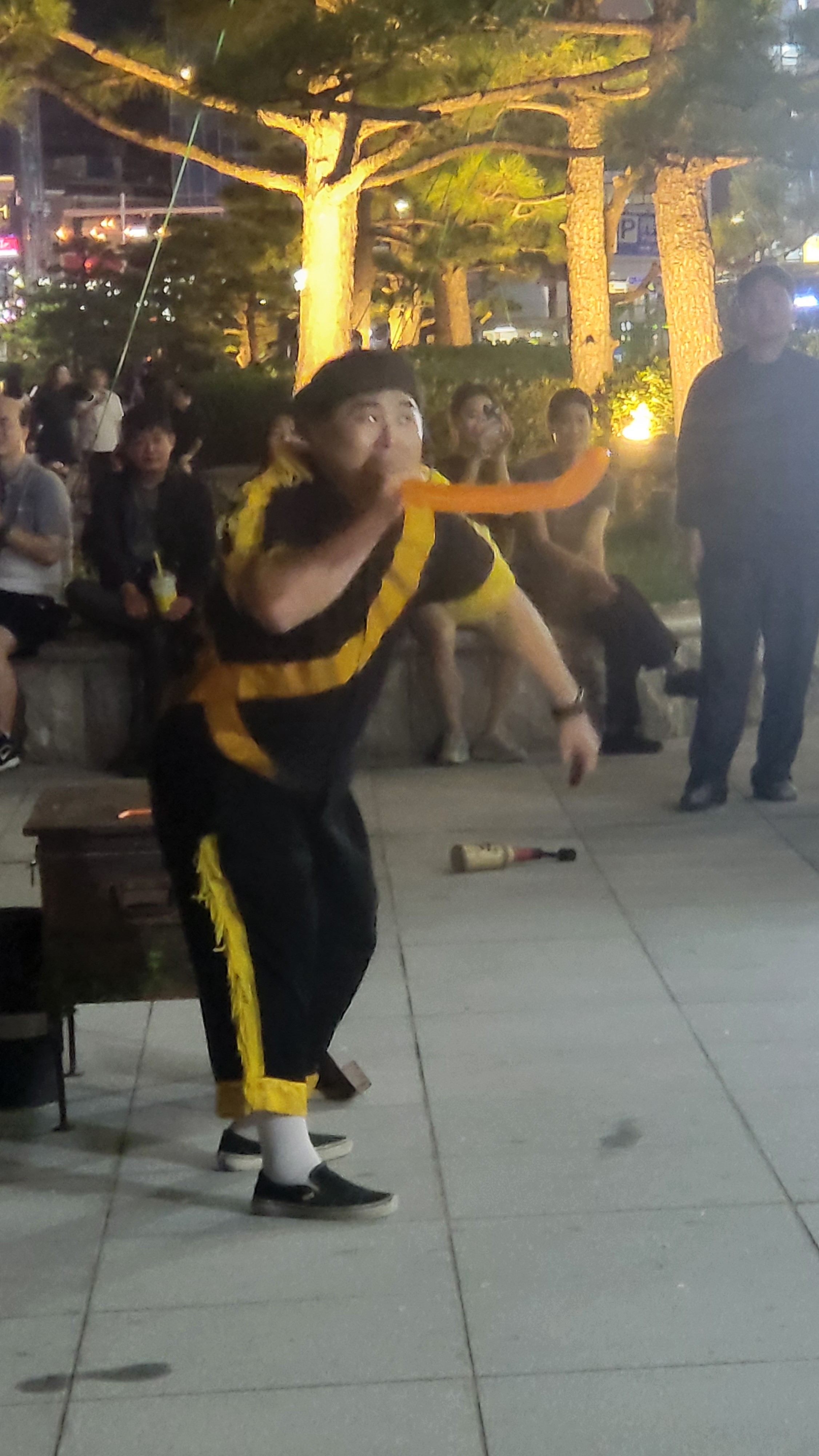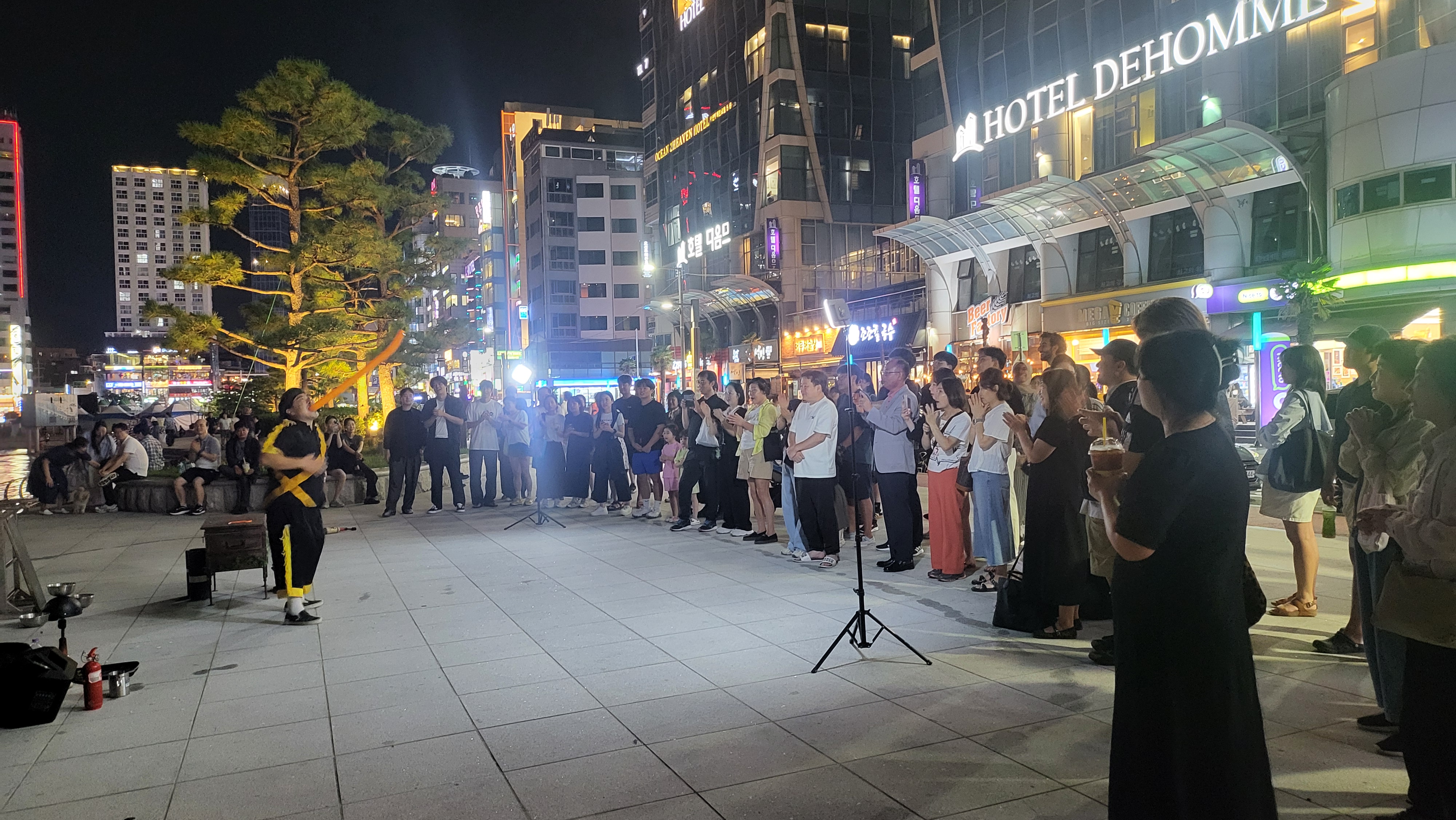 그런 다음 잠시 감상한 해운대 해수욕장 한밤중의 길거리 공연!