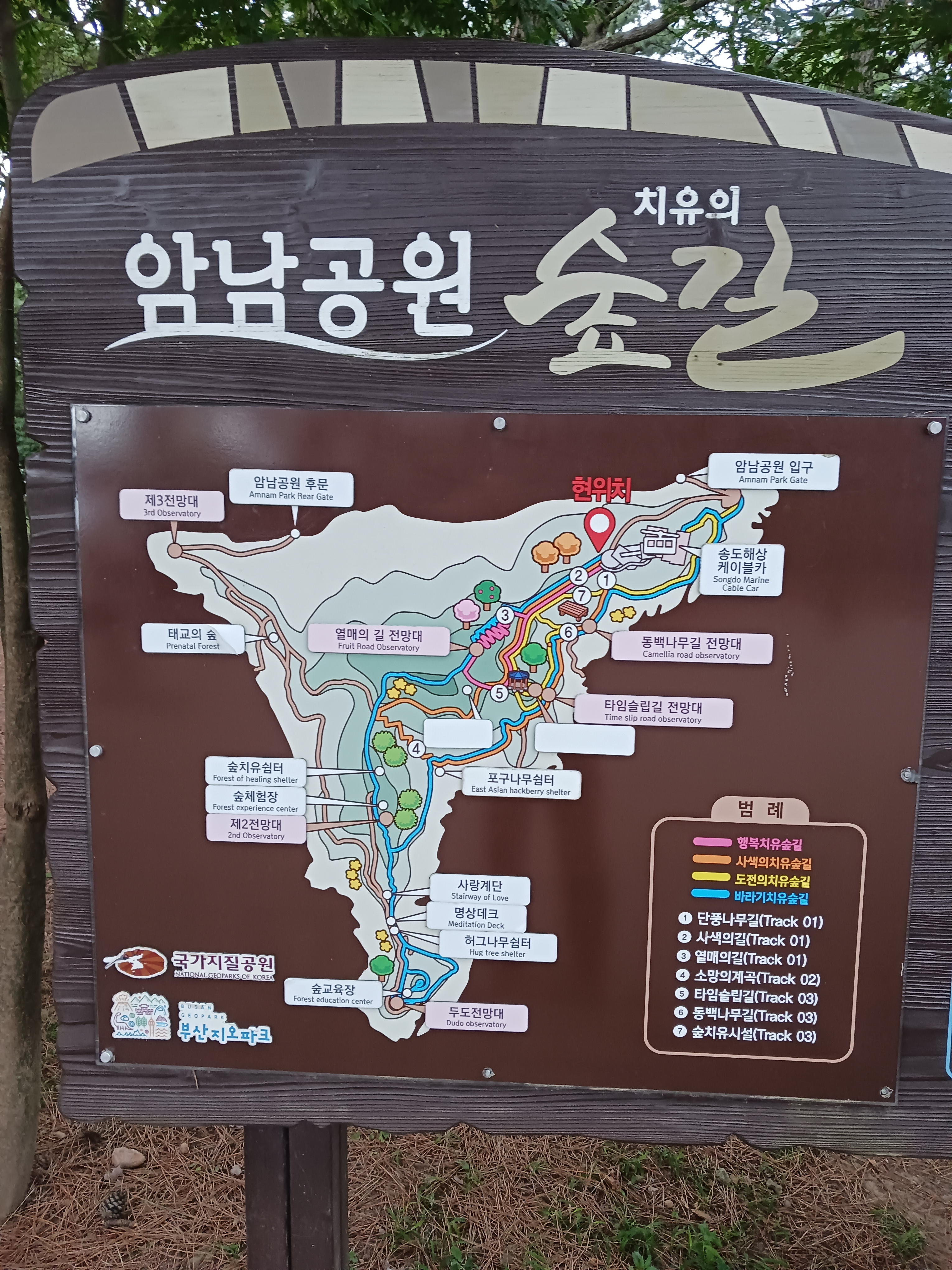 송도해상케이블카 탐방로: 송도베이스테이션 송도해상케이블카 승강장-(케이블카)-송도스카이파크 승강장-암남공원-두도 다리 입구-암남공원 해변길-송도스카이파크 승강장-(케이블카)-송도베이스테이션 송도해상케이블카 승강장