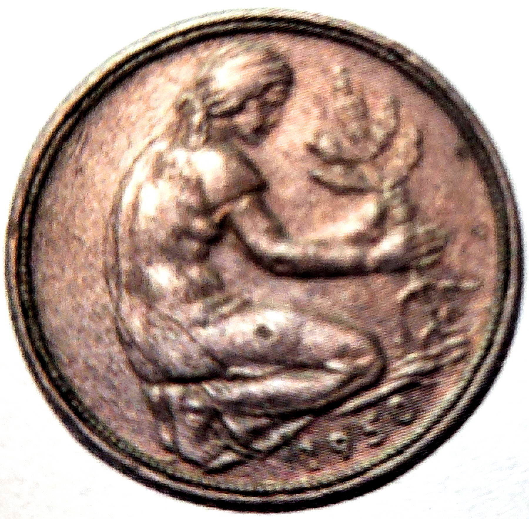 독일 동전에 순수한 소녀가 산에 한 그루의 참나무를 심고 있는 모습을 조각해 놓았다.