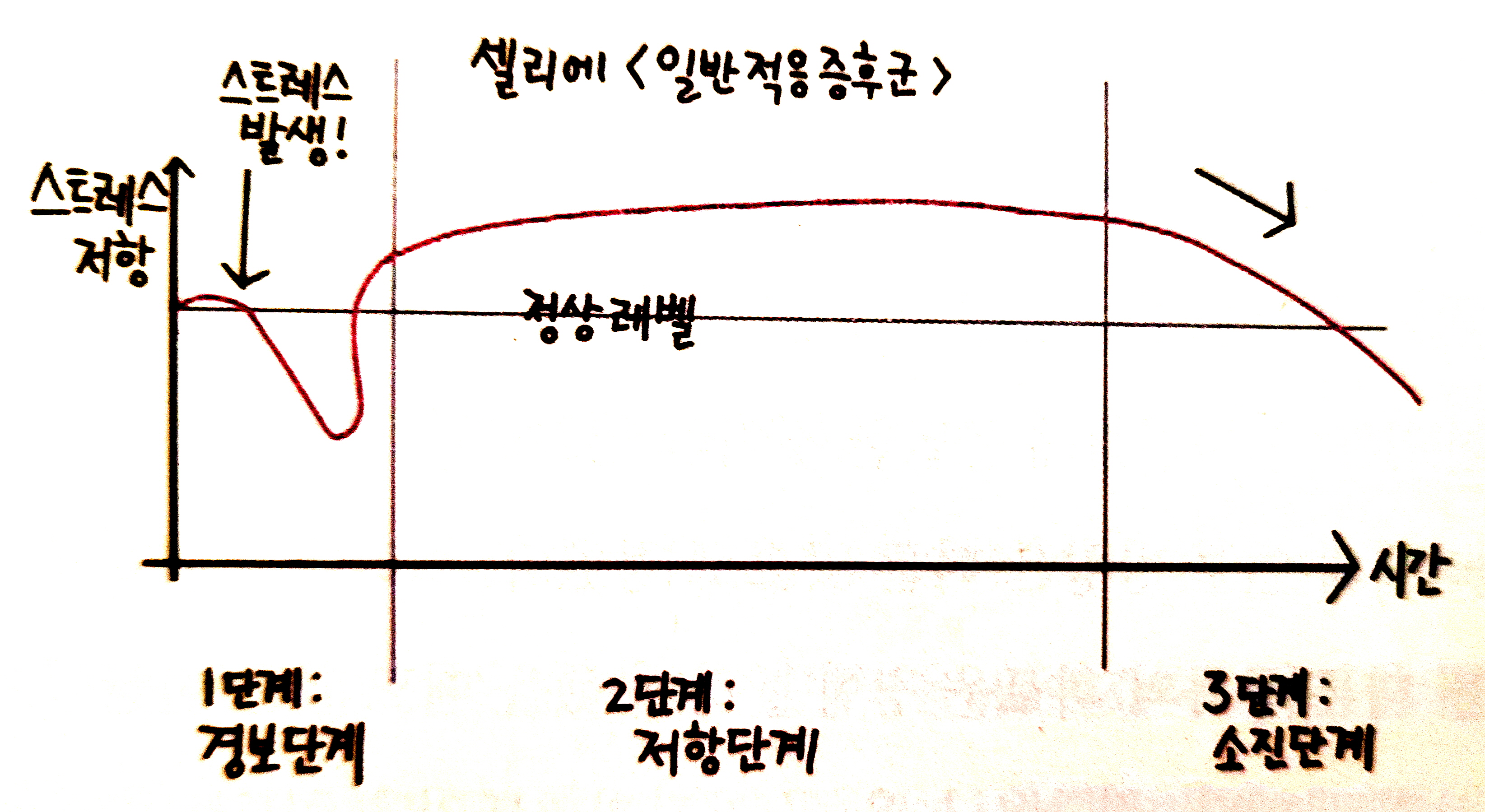 셀리에는 전신순응증후군 즉 스트레스 반응이 3단계로 일어난다고 보았다.