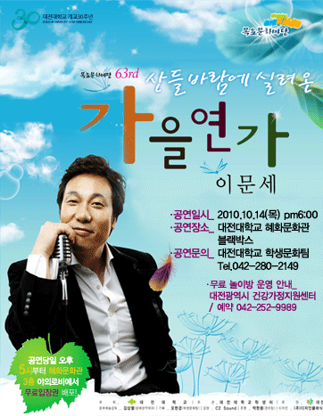 2010년 10월 대전대학교 목요문화마당의 초대 가수 이문세가 부른 <깊은 밤을 날아서> 라이브 동영상.