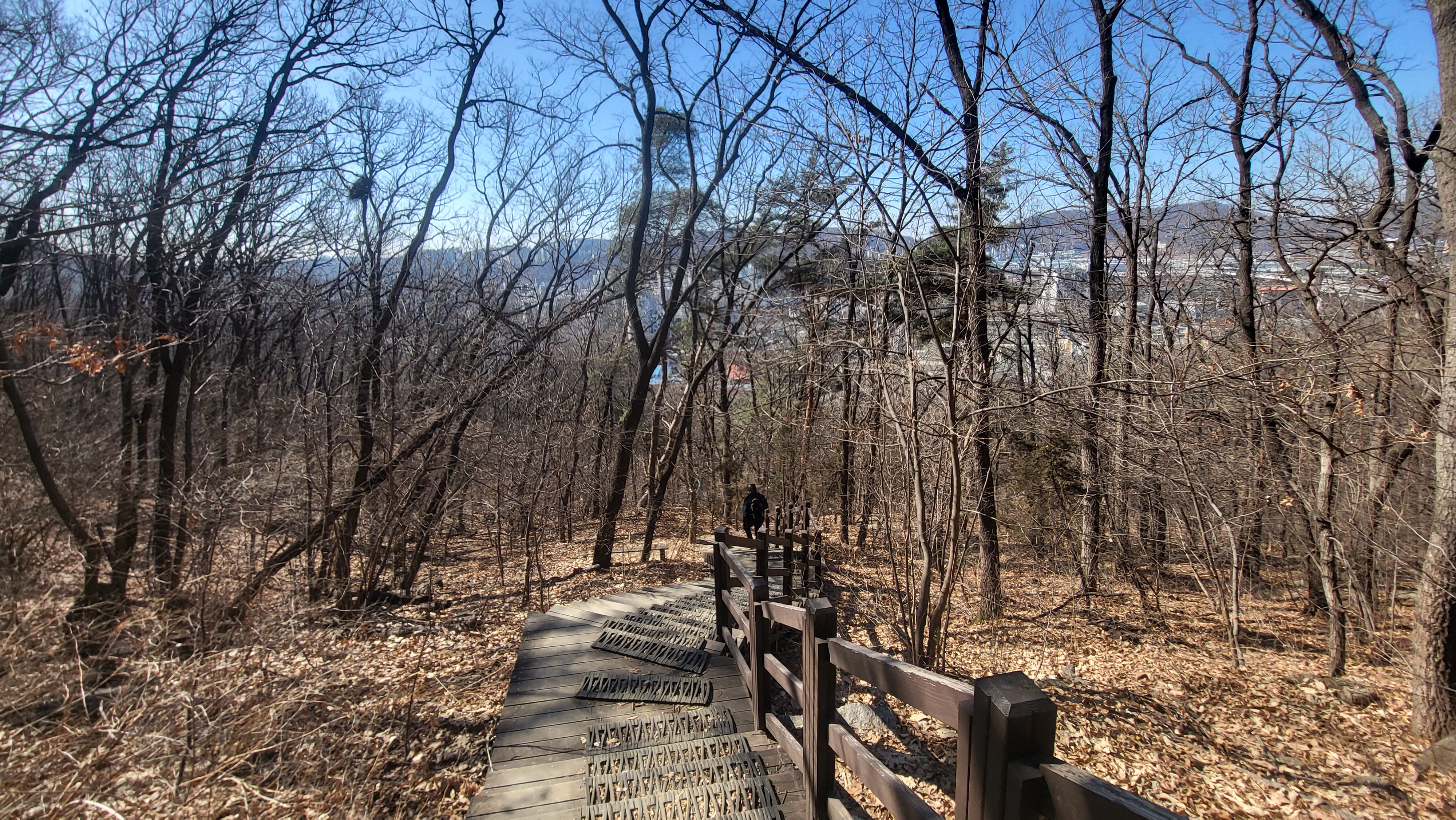 1시 14분 호암산숲길공원에서 우리가 내려왔던 관악산둘레길을 바라본다.
