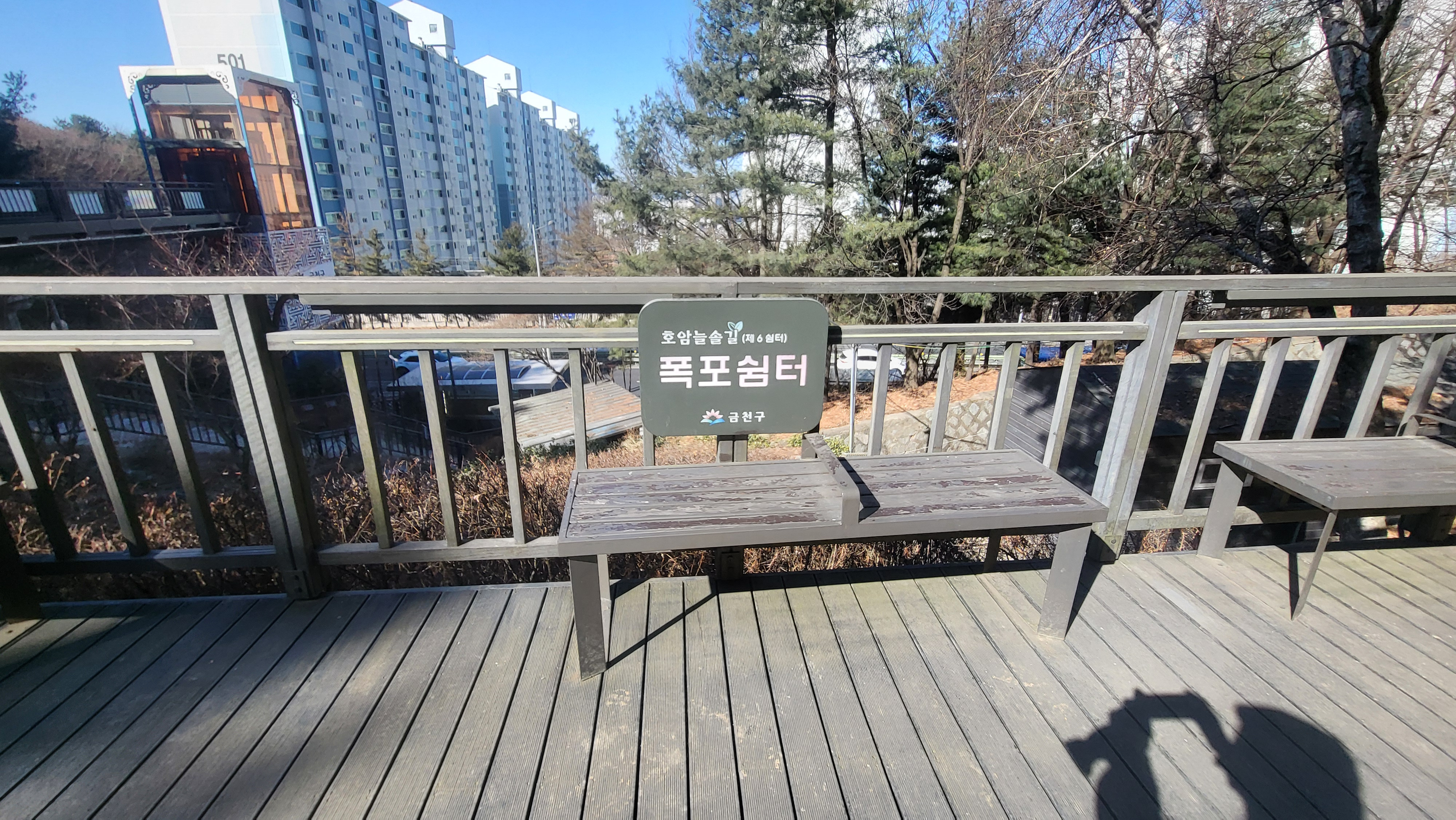 12시 19분 호암늘솔길 폭포쉼터와 폭포.