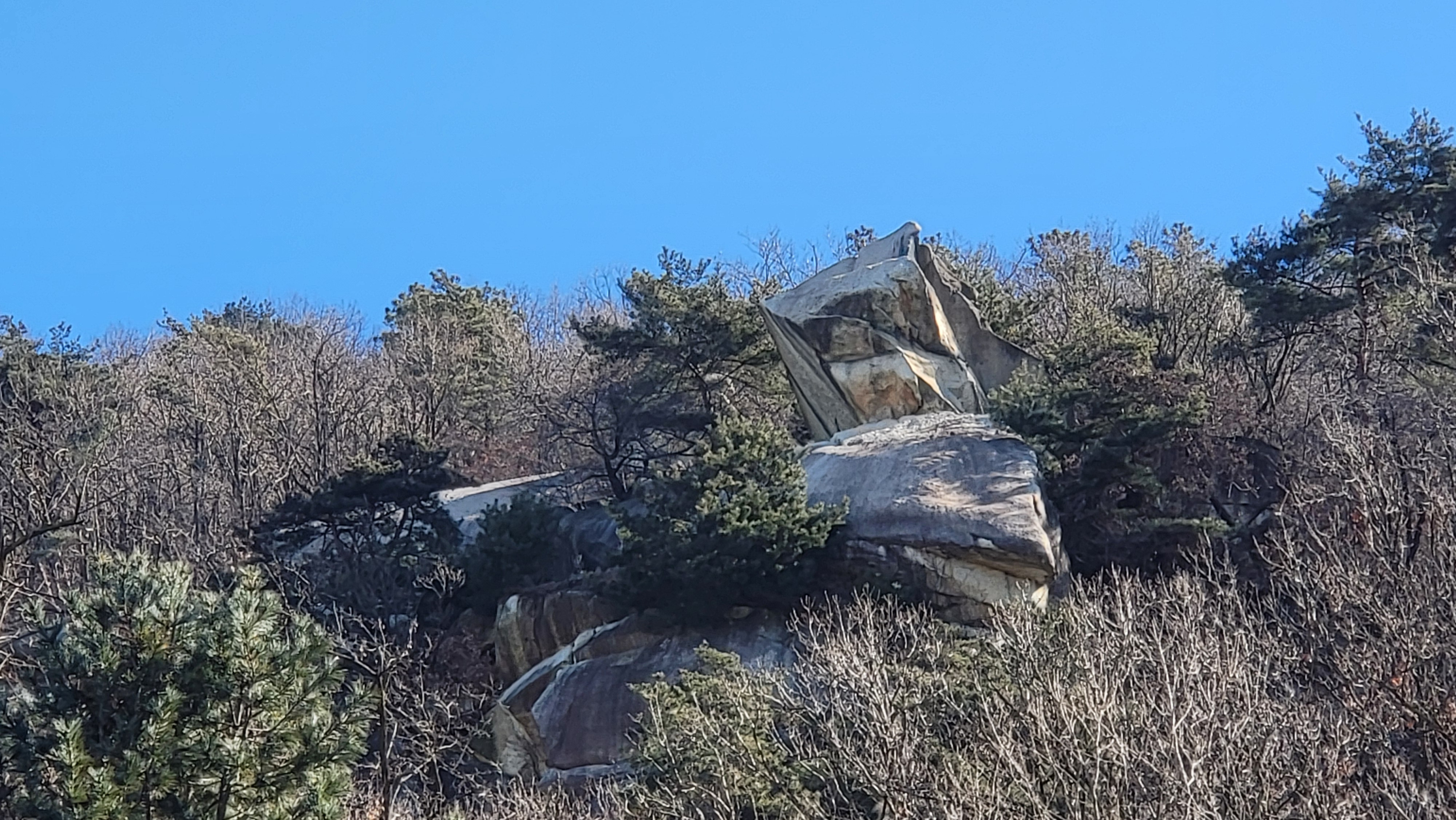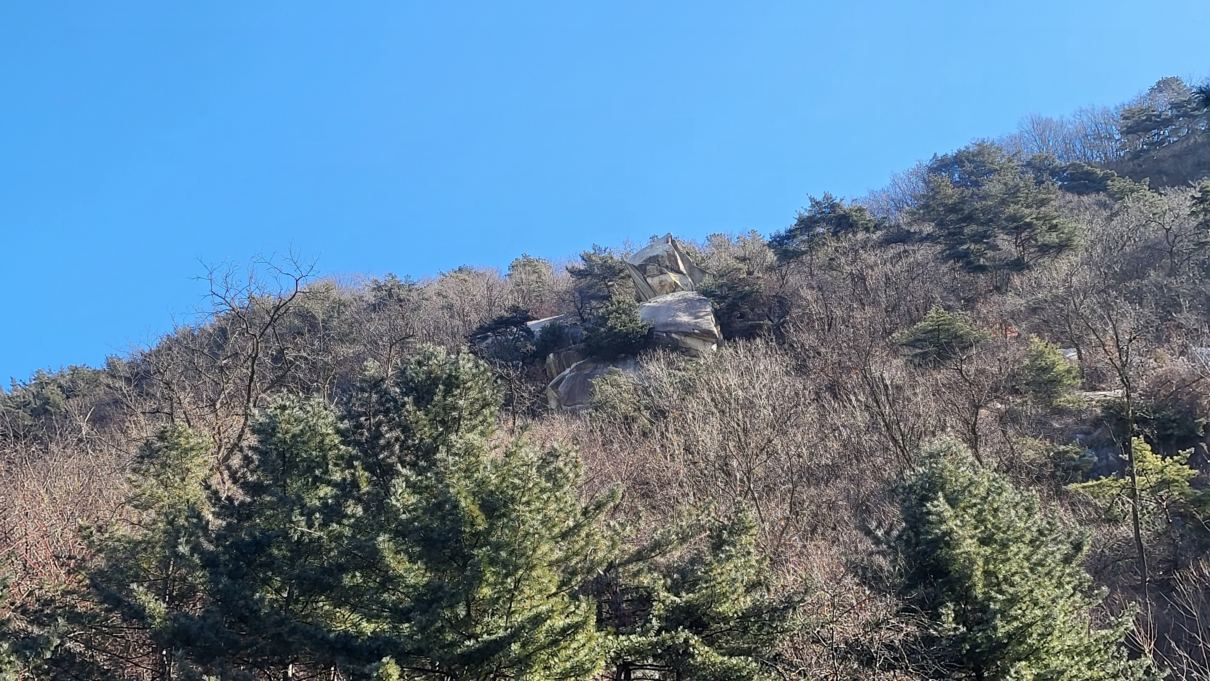 12시 22분 폭포 왼쪽 호암산 칼바위.