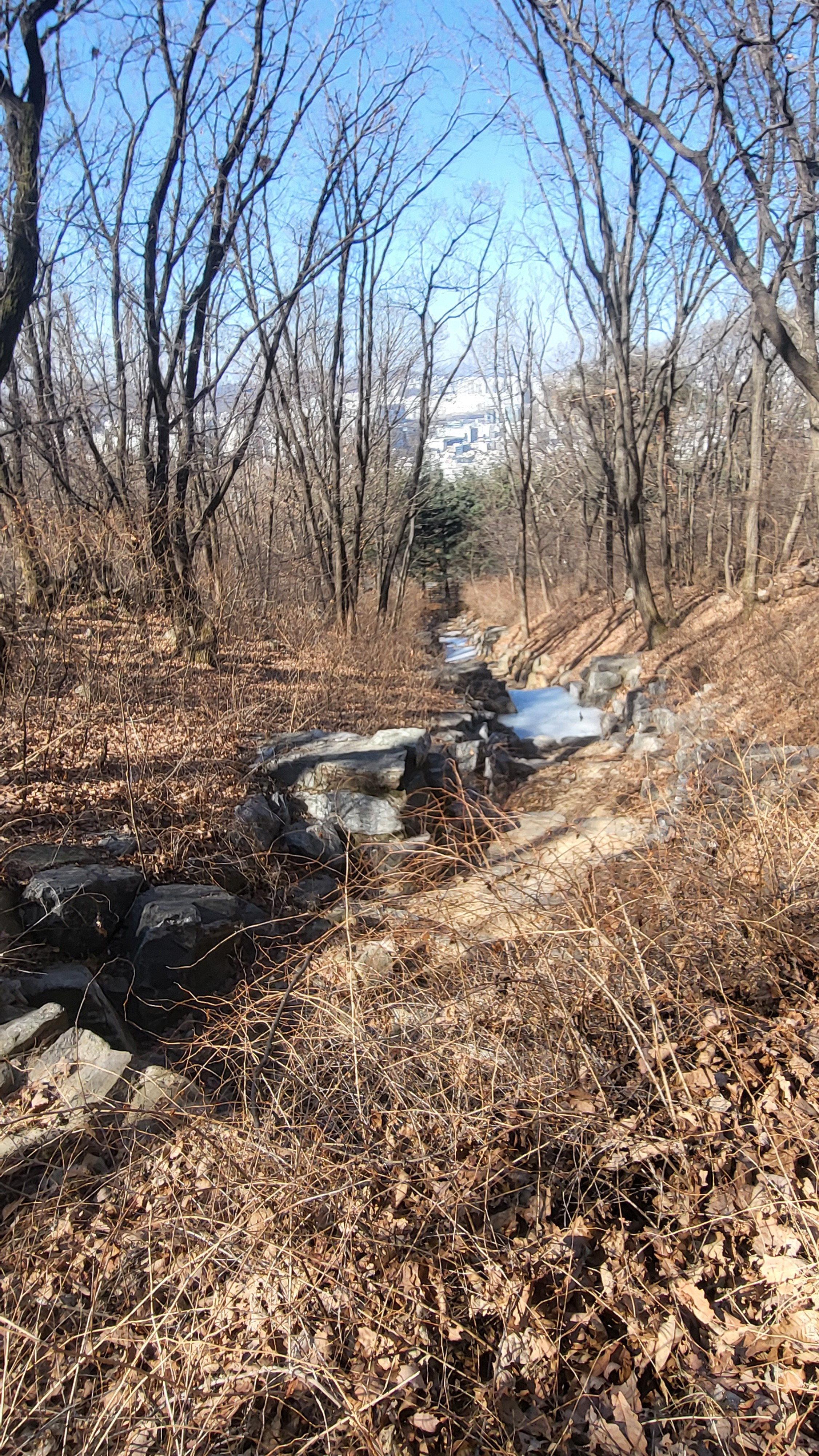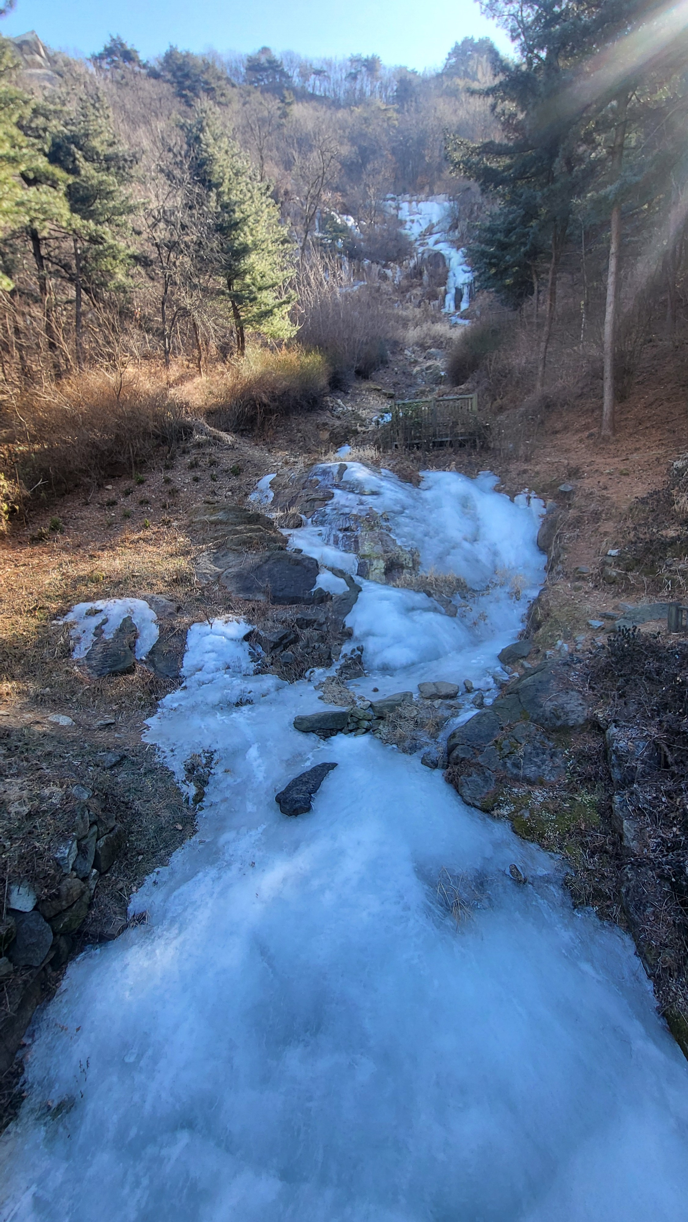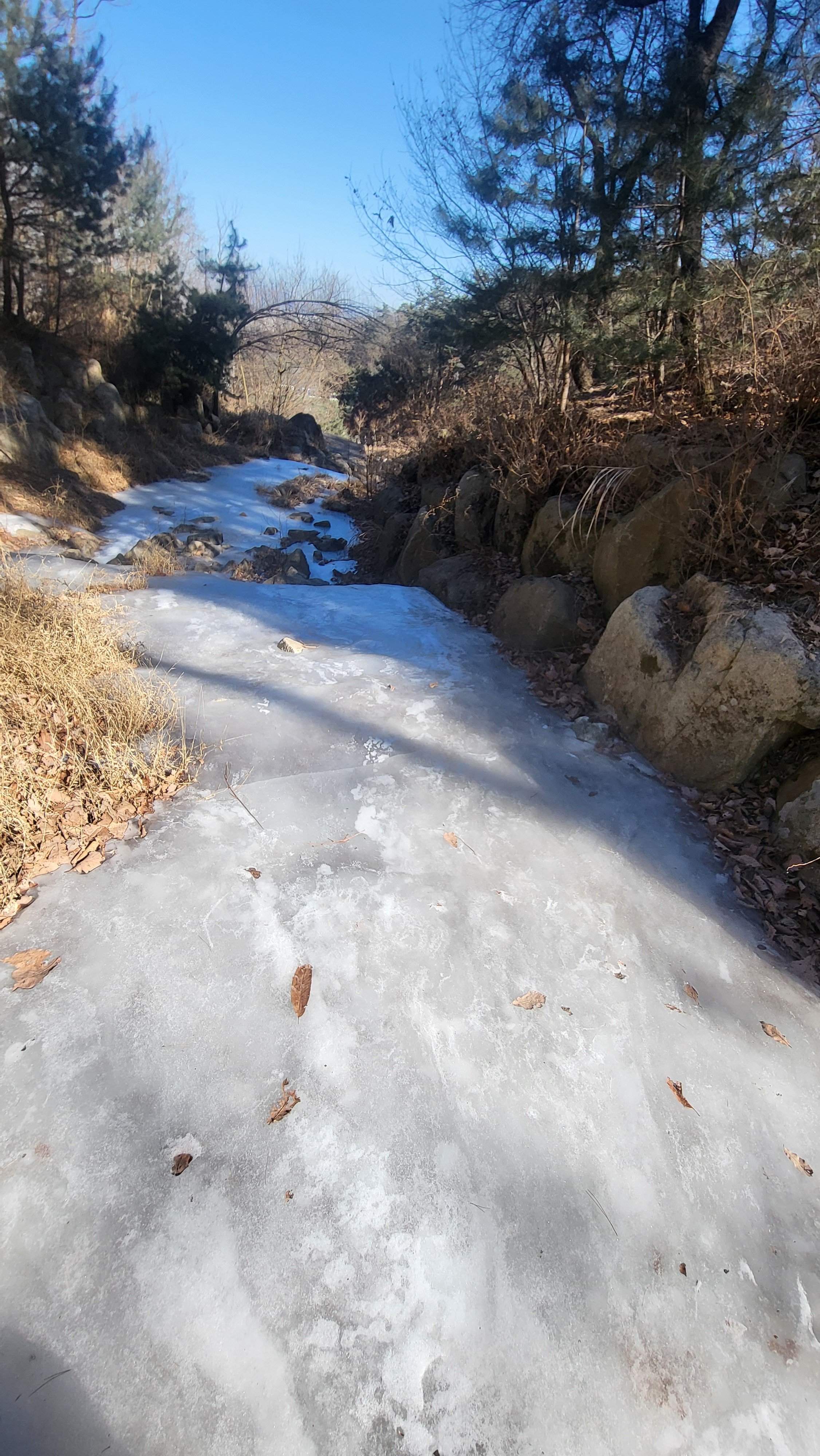 11시 16분 꽁꽁 얼어붙은 관악산 계곡.