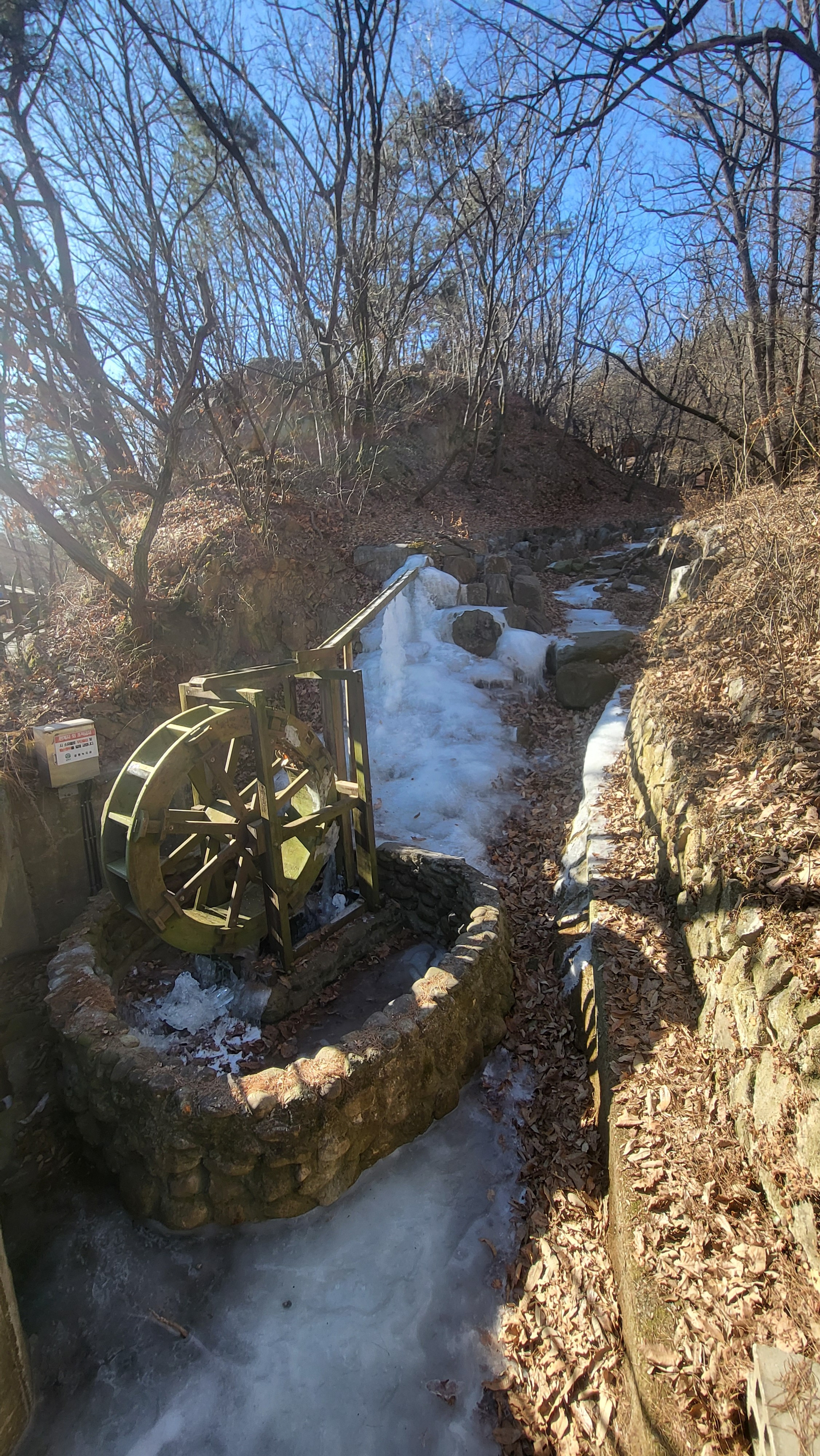 10시 24분 관악산둘레길 2코스 호압사 갈림목 입구 물레방아