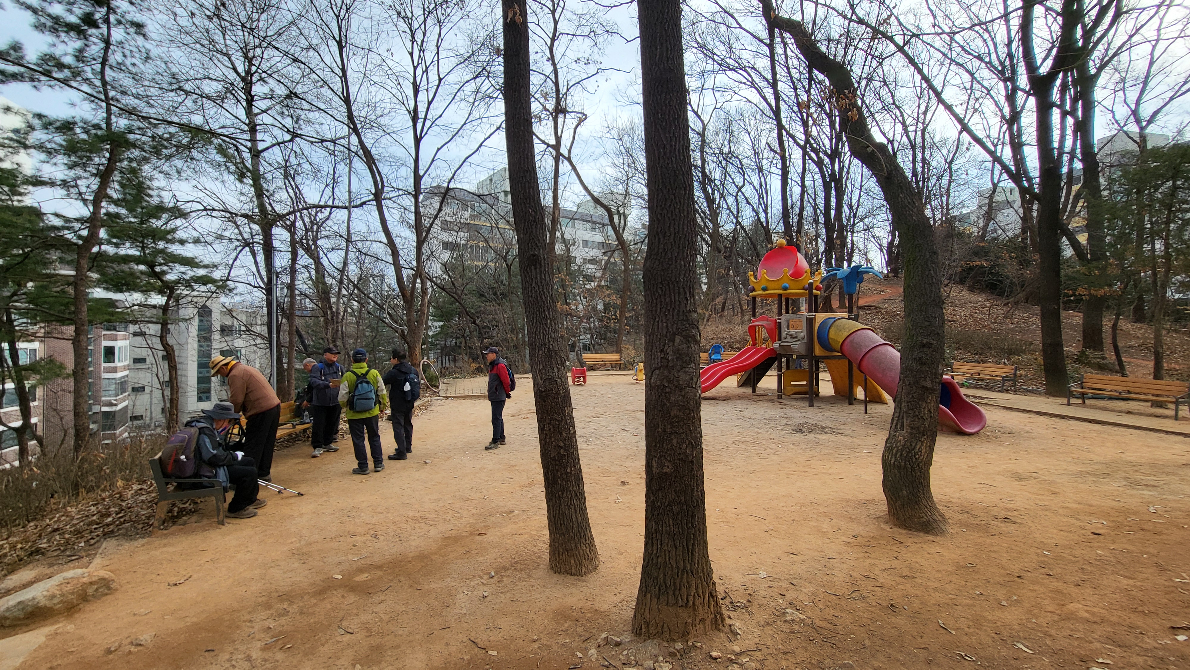 10:44 수국사 앞 언덕 위 어린이놀이터에서 산행 준비.